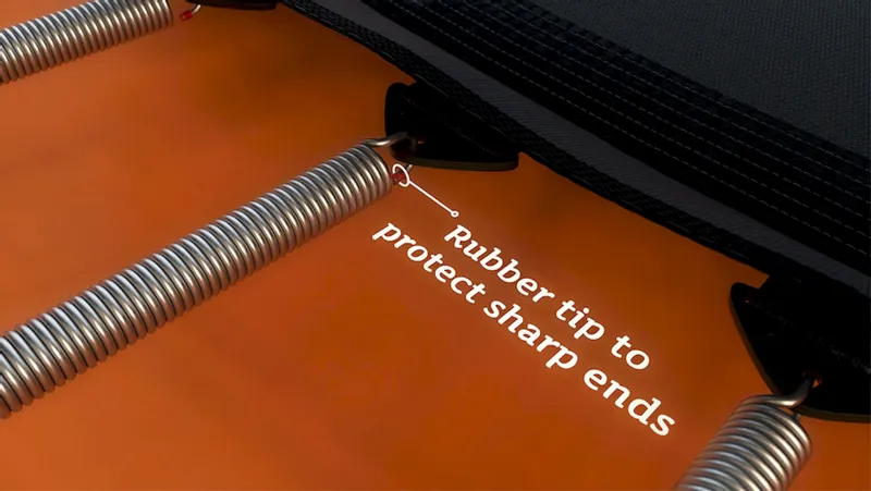 Nadat deze Avyna trampoline is ingegraven, steekt ‘ie maar 20 cm boven de grond uit. Hierdoor is hij supermooi verwerkt in je tuin en staat hij dus erg gaaf. De zijkant van het randkussen valt volledig langs de open ruimte (20 cm) heen. Zo komt er niets onder de trampoline terecht. Het randkussen is ook voorzien van luchtroosters voor een optimaal springcomfort. Hierdoor kan de luchtdruk namelijk weg. Bij lagere kwaliteit inground trampolines kan de lucht minder makkelijk weg, waardoor je een stroeve sprong ervaart.