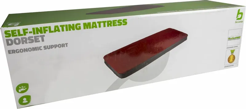 Wel zo belangrijk dat je een slaapmat makkelijk met je meeneemt, toch? De Bo-Camp Dorset weegt maar 4,5 kg. Goed te dragen, wel wat zwaarder dan de Bo-Camp Awassi en Bo-Camp Bibrik. Ingepakt neem je ‘m met een afmeting van 24 x 82 x 24 cm (l x b x h) redelijk compact mee in de draagtas.