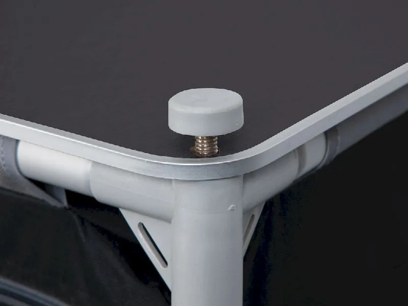 Je hoeft je geen zorgen te maken over de ruimte die het Bo-Camp Moraine Kookeiland in beslag neemt. Het kookeiland is namelijk opvouwbaar tot een dikte van slechts 12 centimeter en wordt geleverd met een draagtas. Het kookeiland weegt 8,65 kg, waardoor je hem prima kunt dragen. Je neemt hem dus eenvoudig mee, ook als je op doorreis bent. De verstelbare poten zijn afzonderlijke af te stellen, waardoor het kookeiland op iedere ondergrond stabiel staat.