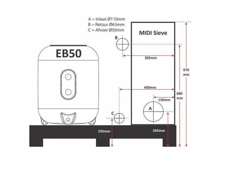 - 3) Afvoer (50mm)