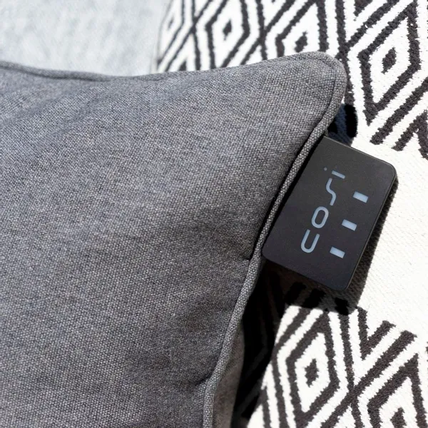 Wist je dat dit kussen eco-friendly is? Wanneer je dit kussen gebruikt is de warmte meteen voelbaar en zo hoef je de thermostaat of terrasheater niet aan te zetten. De intensiteit van de warmte bepaal je helemaal zelf. Het kussen heeft namelijk drie verschillende standen. Zet ´m op standje low 38°C, mid 45°C of high 50°C. De stand selecteer je via de warmteknop op het kussen. Met een enkele druk op de knop wordt het infrarood warmte-element geactiveerd. Of het nu overdag of avond is: je geniet van de heerlijke warmte van deze Cosipillow.