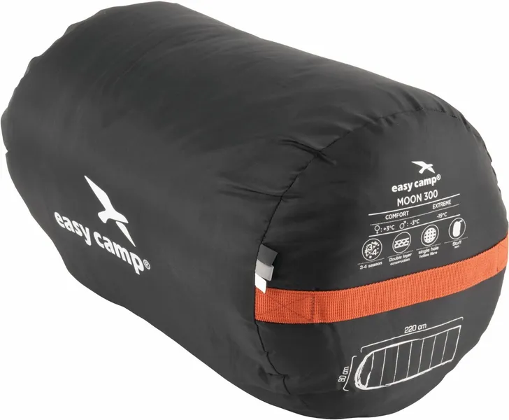 Binnen no-time wegdromen na een actieve dag? Rol dan de Easy Camp Moon 200 junior slaapzak uit en droom heerlijk weg. Deze slaapzak is te gebruiken in lente en herfst (dus hij geeft wel koude tenen in de winter!). De slaapzak is geschikt voor personen tot 195 cm. Daarnaast heeft een trekkoord in het nekgedeelte, een afdekking met rits en een handige opbergtas.