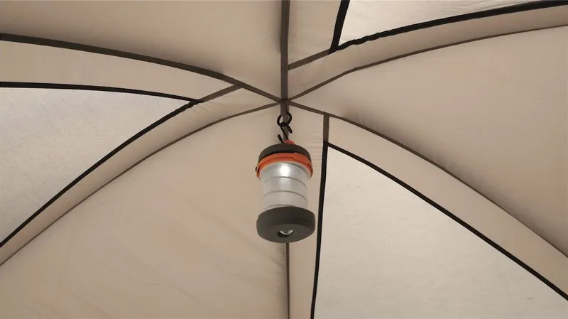 Na een goede nacht slapen met 6 personen in 1 ruimte wil je natuurlijk niet wakker worden in een muffe tent. Daarvoor is goede ventilatie essentieel. Het gaaspaneel in de ingang samen met de 2 grote bedekte dakopeningen en 1 lage ventilatieopening zorgt voor een goede luchtstroom en ventilatie. Zo behoud je een fijne frisse slaapplek, ook met een groep.