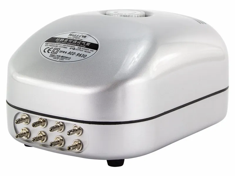 De Hailea aco 9630 luchtpomp verbruikt, ondanks het resultaat, slechts een minimale hoeveelheid stroom. Dit draagt zowel een steentje bij aan het milieu als aan de portemonnee. Ondanks het minimale verbruik heeft de luchtpomp een vermogen van 15W.