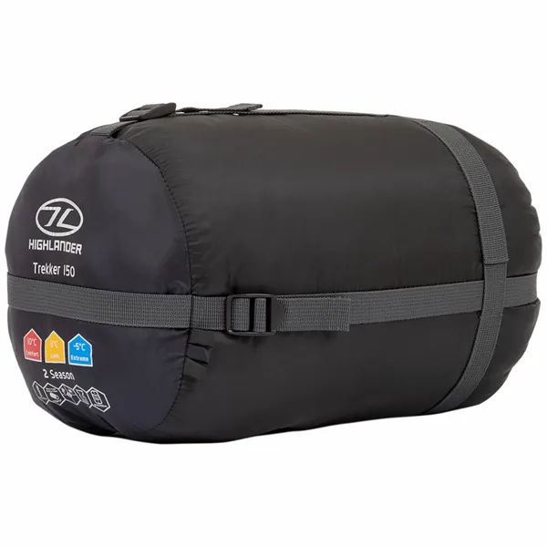 De Highlander Trekker 150 slaapzak weegt maar 1,1 kg en is daardoor geschikt voor trektochten of fiets- en motorvakanties. De slaapzak draagt niet bij aan een te zware rugzak en neemt daarnaast weinig plaats in beslag door de meegeleverde compressiezak.