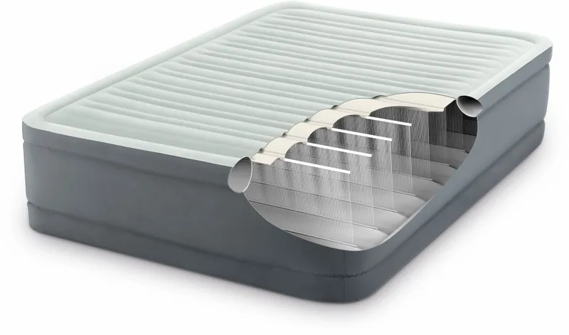 Het Intex PremAire luchtbed zorgt voor een stabiele nachtrust door de Dura Beam Fiber-Tech technologie. Daarbij is ‘ie voorzien van een flock- en pillow toplaag. De flocklaag geeft extra warme en comfort, de pillowlaag zorgt er juist voor dat de lucht zich geleidelijk verplaatst. De combinatie van deze twee lagen zorgen ervoor dat het luchtbed stevig en stabiel is en zich naar je lichaam vormt. Door de hoogte van 46 cm kost het minder moeite om ‘s ochtends uit het luchtbed te stappen. Extra fijn voor degene onder ons die geen ochtendmensen zijn!