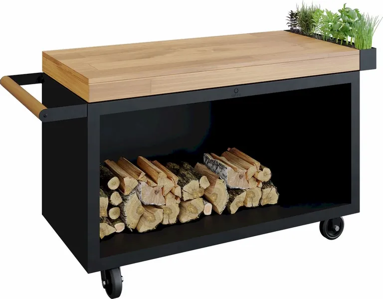 Naast de functie als Mise en Place tafel kun je de OFYR Mise en Place Table 135 PRO Black ook gebruiken om hout op te slaan. Dit is niet alleen praktisch, maar hierdoor verandert de werktafel ook in een ware eyecatcher in je tuin.