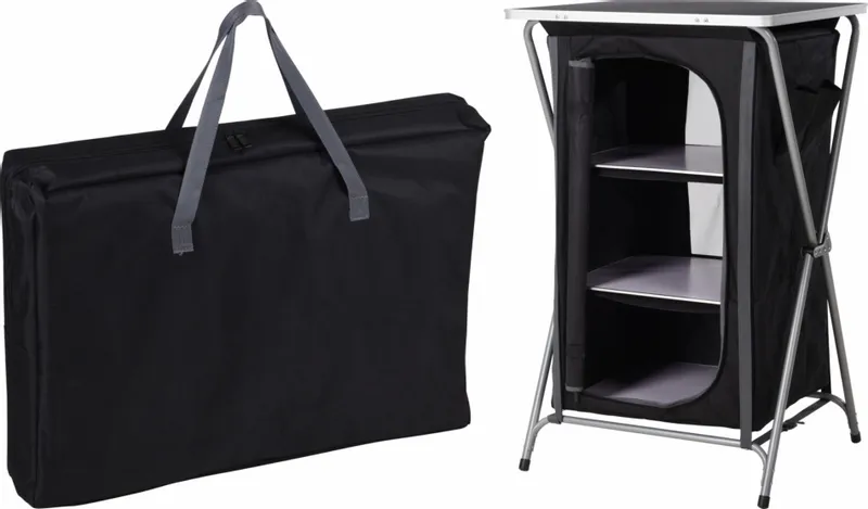 Ben je ook altijd aan het worstelen op de camping over waar je dat besteksetje moet laten? Daar maak je een einde aan met dit campingkastje van Redcliffs. Deze campingkast met 3 lagen is handig om al jouw kampeerartikelen in op te bergen. De campingkast wordt geleverd met een handige opbergtas waardoor je hem makkelijk meeneemt. Ook is er een tafelblad wat je bovenop de kast bevestigt, handig om wat dingen op te zetten dus!