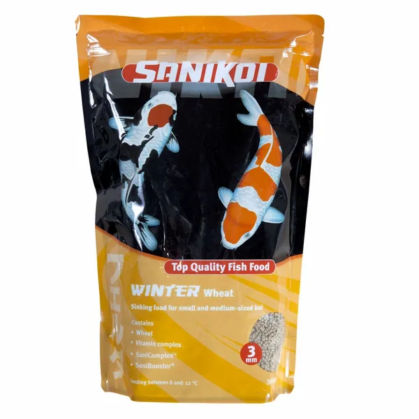 SaniKoi Winter Wheat is een top quality food voor Japanse koi en andere waardevolle karperachtigen. Het is een zinkend voeder dat een natuurlijke ziekteweerstand van de vissen stimuleert. De hoofdbestanddelen bestaan uit vis- en zeevruchtproducten, plantaardige eiwitten, vetten, koolhydraten en aangevuld met tarwe. Speciale aandacht is gegeven aan de toegevoegde sporenelementen en vitaminecomplex, waaronder het gestabiliseerde vitamine C. SaniBooster is het toegevoegde vitaminecomplex dat de immuniteit van de vissen tegen ziektekiemen sterk bevordert.