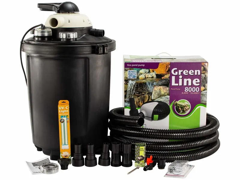 Deze Velda Clear Control 50 filterset wordt compleet geleverd inclusief drukfilter, vijverpomp, UV-C unit en filterslang. Het voordeel van een complete filterset is dat alles perfect op elkaar is afgestemd. Deze Velda Clear Control 50 filterset is geschikt voor vijvers tot maximaal 20.000 liter. Voor vijvers met visbezetting wordt deze maximale vijverinhoud gehalveerd tot 10.000 liter en in het geval van koivijvers moet je rekening houden met een extra halvering tot 5000 liter. Bij de aankoop ontvang je: