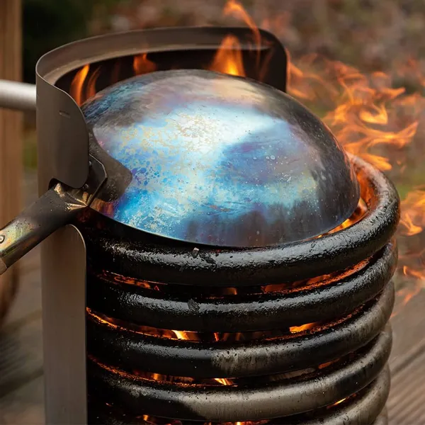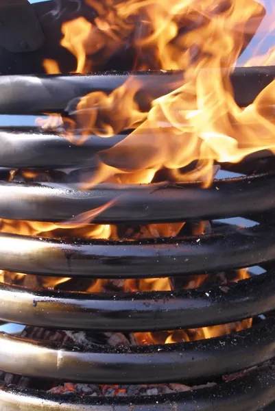 - Steek het vuur in de korf aan, deze zit in de spiraal