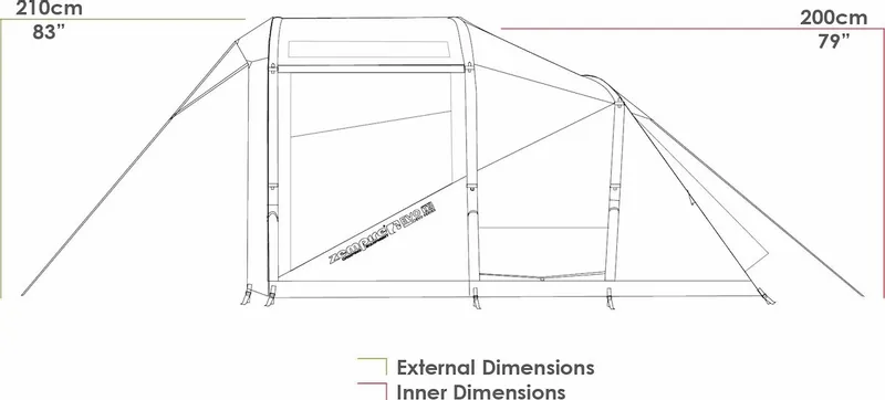 Het buitendoek en het grondzeil van de Zempire Evo TS opblaasbare tent zijn gemaakt van ademend polyester. Het frame bestaat uit Airbeam, dit betekent dat de tent door middel van lucht die je erin pompt, overeind gaat staan. Wees maar niet bang dat je het zomaar benauwd krijgt in deze tent. De Zempire Evo TS opblaasbare tent heeft namelijk 3 way windows die je sluit voor privacy, gedeeltelijk opent voor extra licht en ventilatie, of volledig opent. Dit pas je dus aan naar jouw wensen. Daarnaast heeft de tent twee zij-ingangen waarmee je meteen in de woonruimte komt.