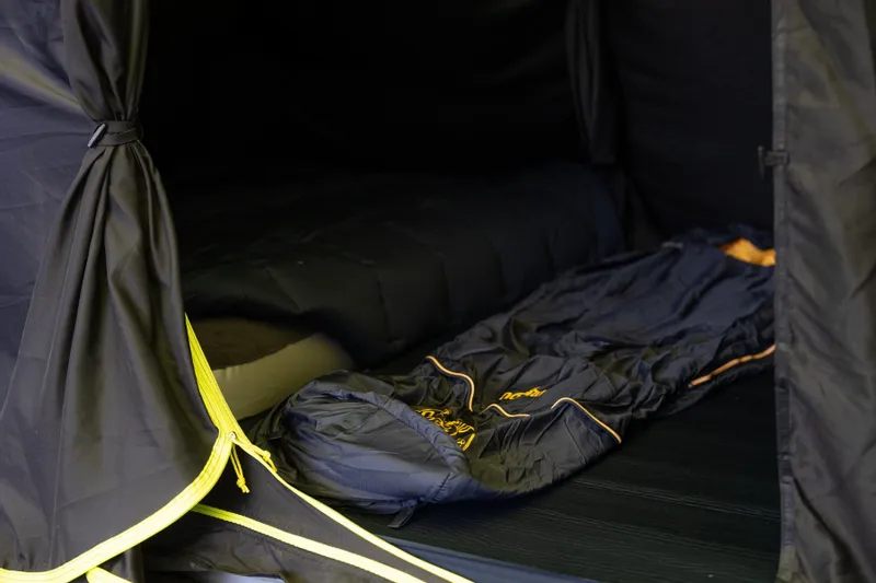 Het opzetten van de Zempire Evo TXL V2 opblaasbare tent duurt maar 20 minuten. De tent zet je op doordat je het opblaast met een pomp. Het enige wat je daarna nog hoeft te doen is de tent met de scheerlijnen vastpinnen in de grond en daar staat ‘ie dan! De tent heeft een waterkolom van 6.000 mm, dit betekent dat ‘ie volledig waterdicht is en bestand tegen enige vorm van druk. Ga je naar een bestemming met onvoorspelbaar weer? Dan is deze tent daar helemaal geschikt voor!