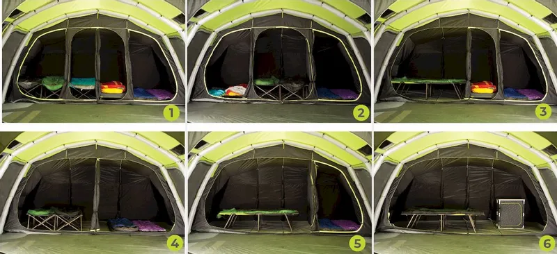 Deze ruime familietent biedt 6 slaapplekken en 1 grote slaapcabine waar je maximaal 4 slaapcabines van maakt door uitritsbare scheidingswanden. Het is dus helemaal aan jezelf of je gezellig met zijn allen bij elkaar ligt of toch kiest voor wat meer privacy. Ook biedt de tent een grote overdekte buitenruimte door de voortent. Wil je lekker met zijn allen buiten in de schaduw ontbijten? Dat kan gerust!