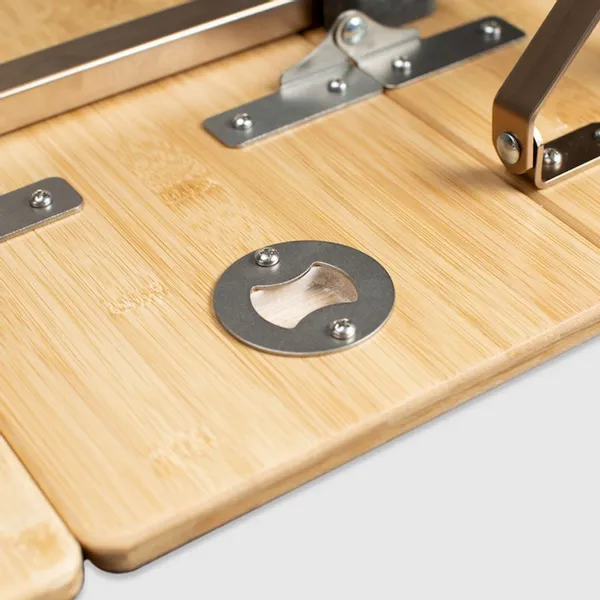 Een inklapbare campingtafel met een hitte- en vochtbestendig blad van naturel bamboe. De Zempire Kitpac V2 Campingtafel groot is superhandig! Door de verstelbare poten kan de tafel op salontafelhoogte worden gebruikt en door de micro-instelbare voetjes staat ‘ie zelfs op oneffen oppervlakken recht! Bovendien heeft de campingtafel een oppervlakte van 100 x 65 x 48 cm en heeft ‘ie een aluminium frame met een vierkant stevig, lichtgewicht en roestbestendig profiel. Daarnaast heeft de campingtafel een ingebouwde flesopener, borrelen maar!